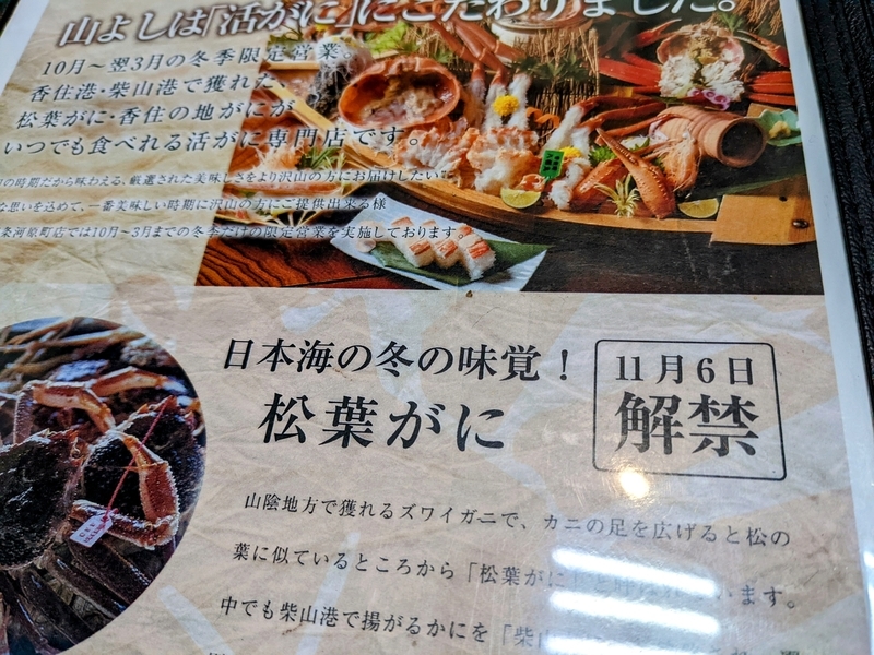山よしは、蟹料理専門店で、滋賀県の堅田店と、京都四条河原町店があります