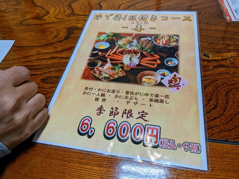 カニすきや、カニ刺しの盛り合わせなど、美味しそうなお料理がいっぱいありましたが、今回は、いろいろ食べられるこちらにしました