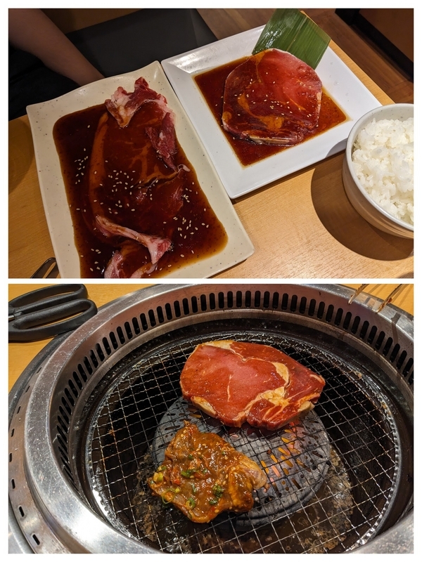 タレ付き肉はたっぷりタレが付いていますが、焼くとそれほど濃い味ではありませんでした。