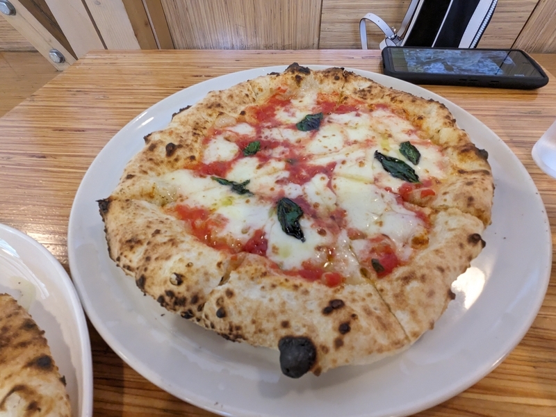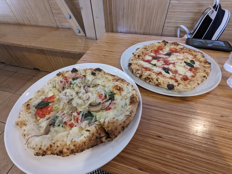 お目当てのピッツア工房。ガラス張りのお洒落なお店です。