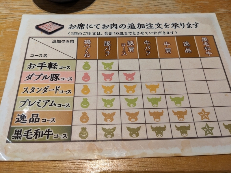 しゃぶしゃぶコースは何種類かあって、豚肉のみや豚と牛が両方食べられたり、好みのコースが選べます。