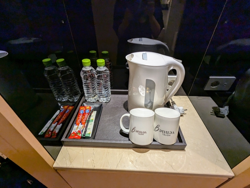 インスタントコーヒーと緑茶のパックがあって、お水は毎日2本補充されました。ありがたや~