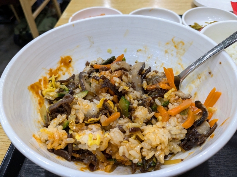 明洞で少し両替した後、屋台街やOLIVE YOUNGを素通りしビビンパを食べに行きました。