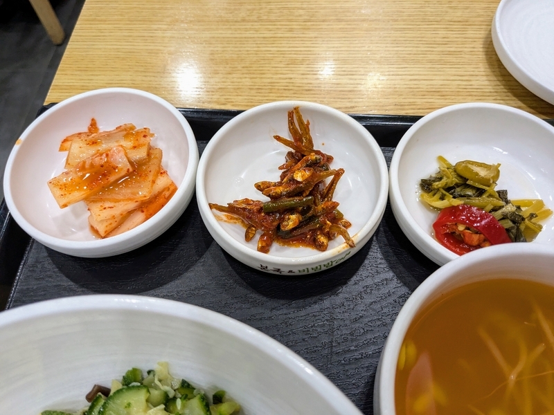 副菜のキムチもやや酸っぱめでしたが美味しかったし、雑魚みたいなのも美味しかったです。